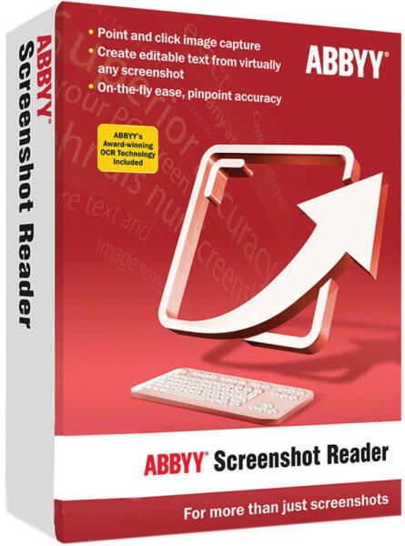 Az ABBYY Screenshot Reader segítségével szövegeket és táblázatokat rögzíthet újragépelés nélkül. Könnyen használhatóA program főképernyőjén kiválaszthatja a képernyőfotó területét és a kimeneti formátumot. A Screenshot Reader beállítható úgy, hogy minden indításkor automatikusan elinduljon, és mindig kéznél legyen. Sokféle mentési formátumAz ABBYY Screenshot Reader lehetővé teszi a képernyőképek mentését JPEG, Bitmap vagy PNG formátumban. A szöveges képernyőképek szerkeszthető szövegként...